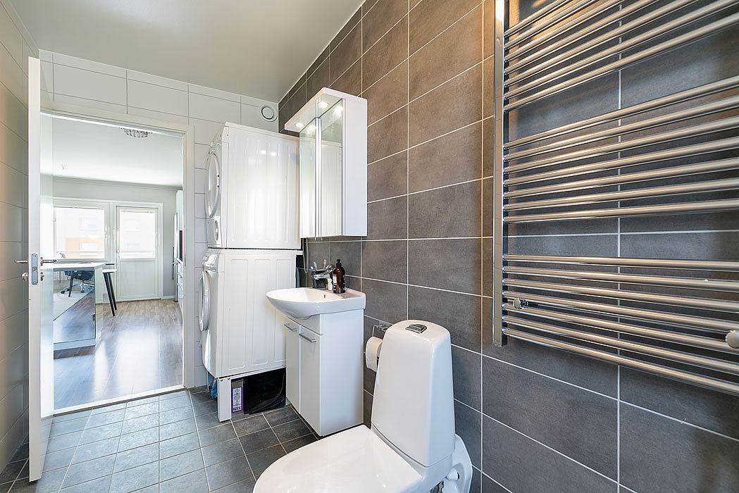 Hall: Välkomnande ljus luftig hall med öppen planlösning med köket. Fräscht ekmönstrat laminatgolv och fräscha målade väggar. Säkerhetsdörr finns. Badrum: Smakfullt nyrenoverat badrum med vita helkaklade väggar och kaklad fondvägg i grafitgrå som matcha det gråmönstrade klinkergolvet. Dusch med vikbara glasdörrar samt tvättpelare med tvättmaskin och torktumlare. Inredningen består av: Tvättställ med kommod, badrumsskåp med spegel och belysning, wc och handdukstork samt tvättmaskin från Electrolux och torktumlare från Siemens. Kök: Luftig öppen planlösning mot ett fint modernt kök. Matplatsen är rymlig med plats för matbord för 4 personer. Smakfullt och välplanerat kök i vitt med inbyggda och integrerade maskiner samt marmormönstrat kakel ovanför diskbänken. Fint ekmönstrat laminatgolv och fräscha målade väggar. Köket har utgång till en solig inglasad balkong med strålande utsikt över Albyberget och innergården. Utrustningen består av: nedfälld induktionshäll, underbyggd ugn, spisfläkt, integrerad diskmaskin från Electrolux, inbyggd kyl/frys från Bosch samt inbyggd mikro. Vardagsrum: Stort fint vardagsrum med fint ekmönstrat laminatgolv och fräscha målade väggar. Två stora fönster med strålande utsikt över lekpark. Sovrum: Mycket rymligt sovrum med fint ekmönstrat laminatgolv och fräscha målade väggar med fondtapet samt garderobsystem med skjutdörrar. Balkong: Härlig inglasad balkong i soligt söderläge med sol hela dagen. Lugnt och högt läge med strålande utsikt över Albyberget och den grönskande innergården. Balkongen har trallgolv och plats för balkongmöbler. Förråd: Ett rymligt och praktiskt förråd följer med lägenheten och finns utanför på samma våningsplan. Stambyte: Fastigheten har nyligen färdigställt stambytet 2024 med bl. a. nytt badrum och inredning, köket med ny köksblandare, nya avlopp och vattenledningar, nya element och fönster i alla rummen samt ny elcentral. Omdragen el ledningar i hela lägenheten. Övrigt Uppgifterna om lägenheten härrör huvudsakligen från säljaren och kontrolleras av fastighetsmäklaren endast om omständigheterna ger anledning till detta. Samtliga areauppgifter är baserade på säljarens information samt kontrollerad med föreningen. Uppgifterna kan variera beroende på olika uppmätningsnormer. Köparen uppmanas därför att kontrollmäta innan köpet om det är av stor vikt för hen. Budgivning Vi tillämpar öppen budgivning. Det innebär att du som spekulant lämnar ditt bud till den ansvarige fastighetsmäklaren, som löpande redovisar det högsta budet till säljaren och till övriga budgivare. Vid kontraktsskrivningen redovisas budgivningslistan med namn, telefonnummer, bud och tidpunkt till köpare och säljare. Säljaren har alltid fri prövningsrätt och behöver inte sälja till den som lagt det högsta budet. Innan köpekontraktet är undertecknat av bägge parter har inget bindande avtal träffats. Om någon spekulant lämnar ett bud efter avslutad budgivning, men innan köpekontraktet undertecknats, är mäklaren skyldig att framföra detta bud till säljaren, som tar ställning till om budet skall beaktas eller ej. Var vänlig och respektera säljarens önskemål om att boka tid med oss för visning.