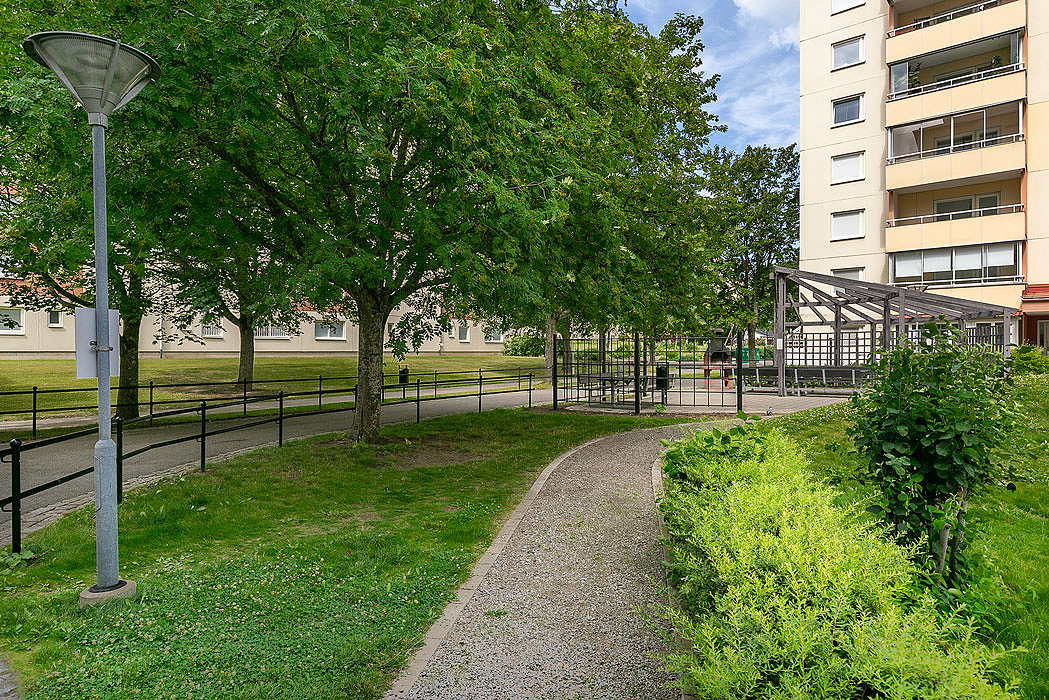Väldigt trivsamt område intill Hallunda Centrum som har ett stort utbud av butiker, restauranger, gym och vårdcentral mm. Närhet till skolor, dagis och idrottshall samt T-banan ligger ca 600 m bort och du tar dig in till Stockholms T-central på ca 35 minuter, med bil ca 25 minuter. Ca 10 min med bilen till Kungens Kurva handelsplats, Heron City som erbjuder bio, bowling, restauranger och butiker samt Skärholmens centrum med ca 200 butiker. Cykel och gångavstånd till Mälaren med fina promenadstigar, badplats och motionsspår längs vattnet.