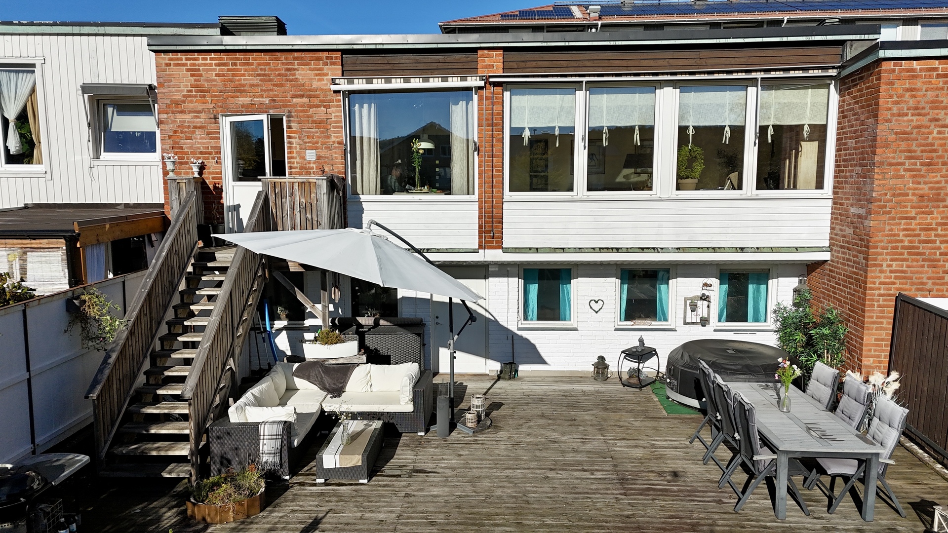 Välkommen till detta ljusa och välplanerade radhus. Genomgående stora sovrum och ett vardagsrum/kök med fantastiskt ljusinsläpp!