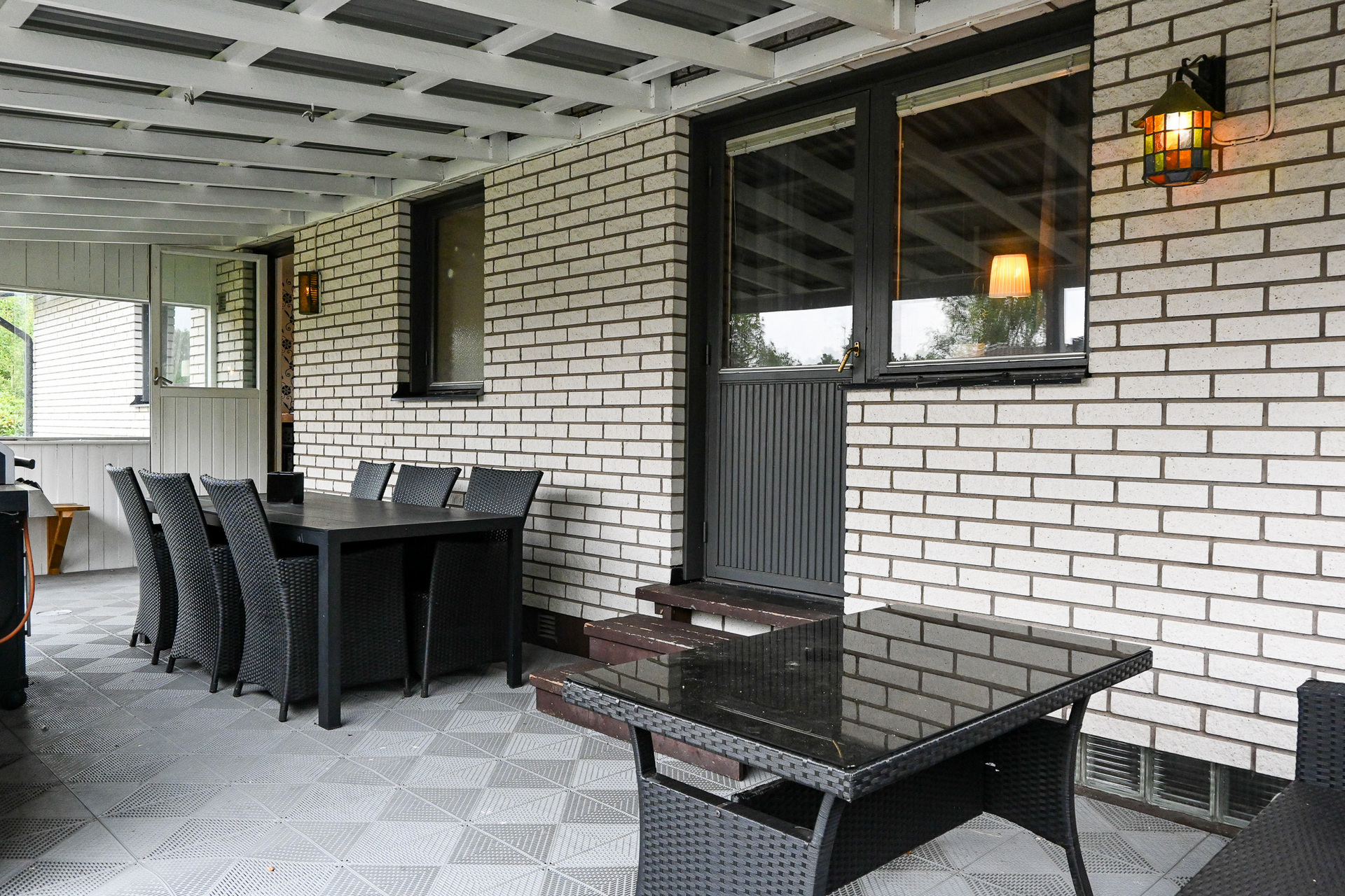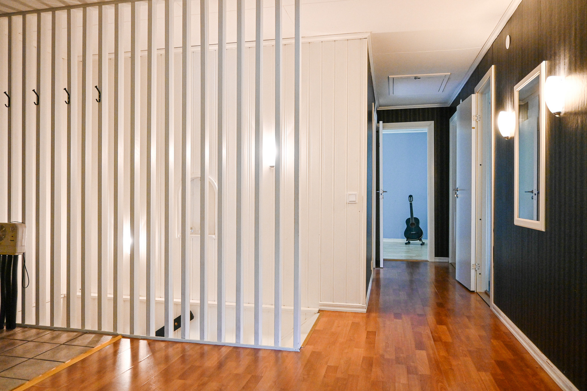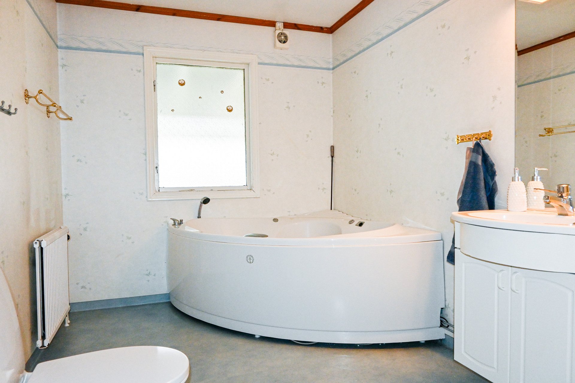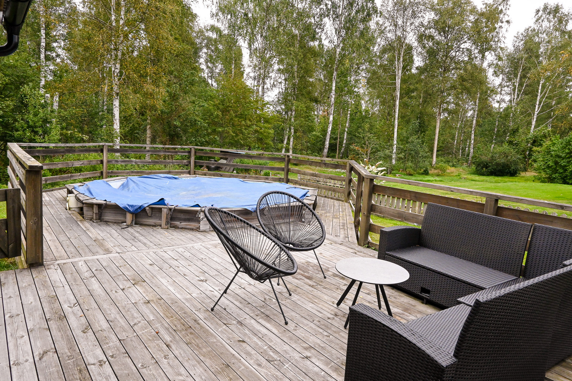 Rumsbeskrivning boendeplan ca 113 kvm fördelat på stort vardagsrum med ekparkettgolv. 3 sovrum med garderober, varav ett sovrum med utgång. Stort renoverat kök med bra matplatsutrymme & utgång till takförsedd altan med infälld pool, vitmålad inredning, fläktkåpa, spishäll, inb. ugn, kyl/frysskåp, samtliga vitvaror är rostfria. Stort renoverat WC-badrum med bubbelbadkar, toalett & tvättställskommod. Entréhall med laminatgolv & klinkergolv vid entrén. Källare ca 107 kvm fördelat på stor gillestuga med trägolv & öppen spis med insats. Stort hobbyrum. WC-rum med toalett & handfat. Tvättstuga med tvättmaskin, torktumlare, duschkabin & tvättho. Pannrum med Luft/vattenvärmepump - 2015. El VVB. ( Vedpanna - 1997 samt 3 ackumulatortankar med totalt hela 2250 L finns men används ej av nuvarande ägare). Matkällare. Klädkammare. Förråd & hall. Luft/luftvärmepump.