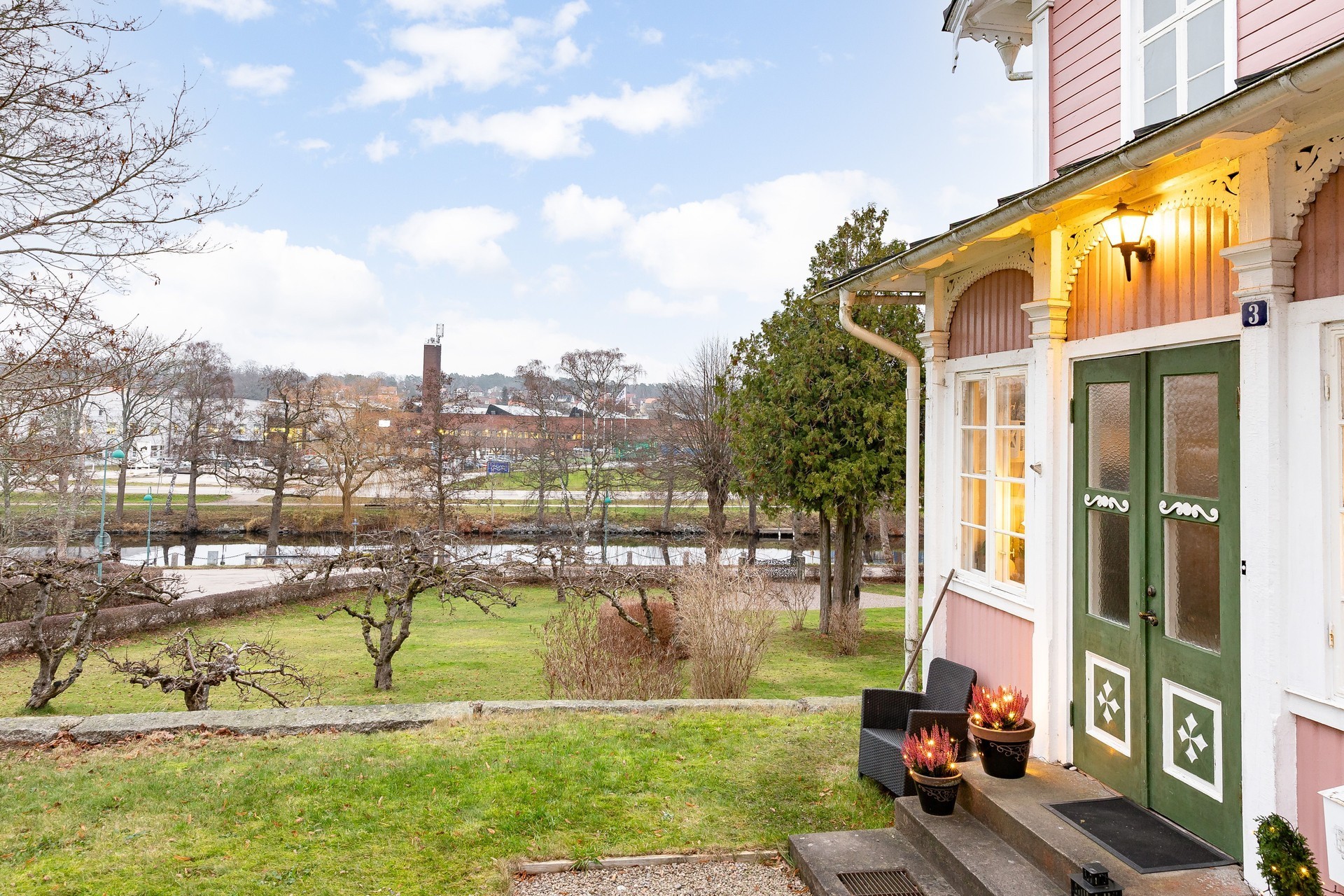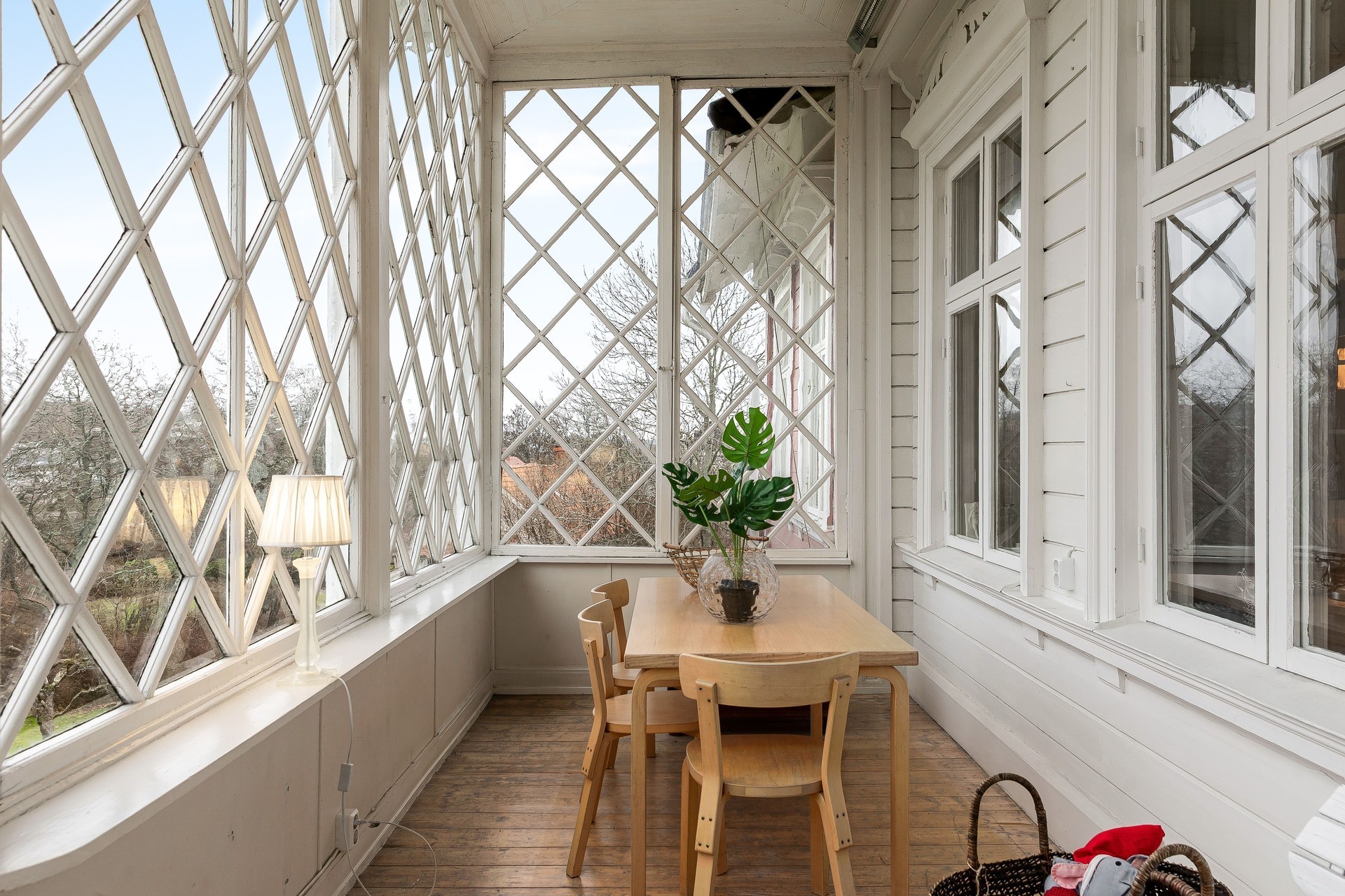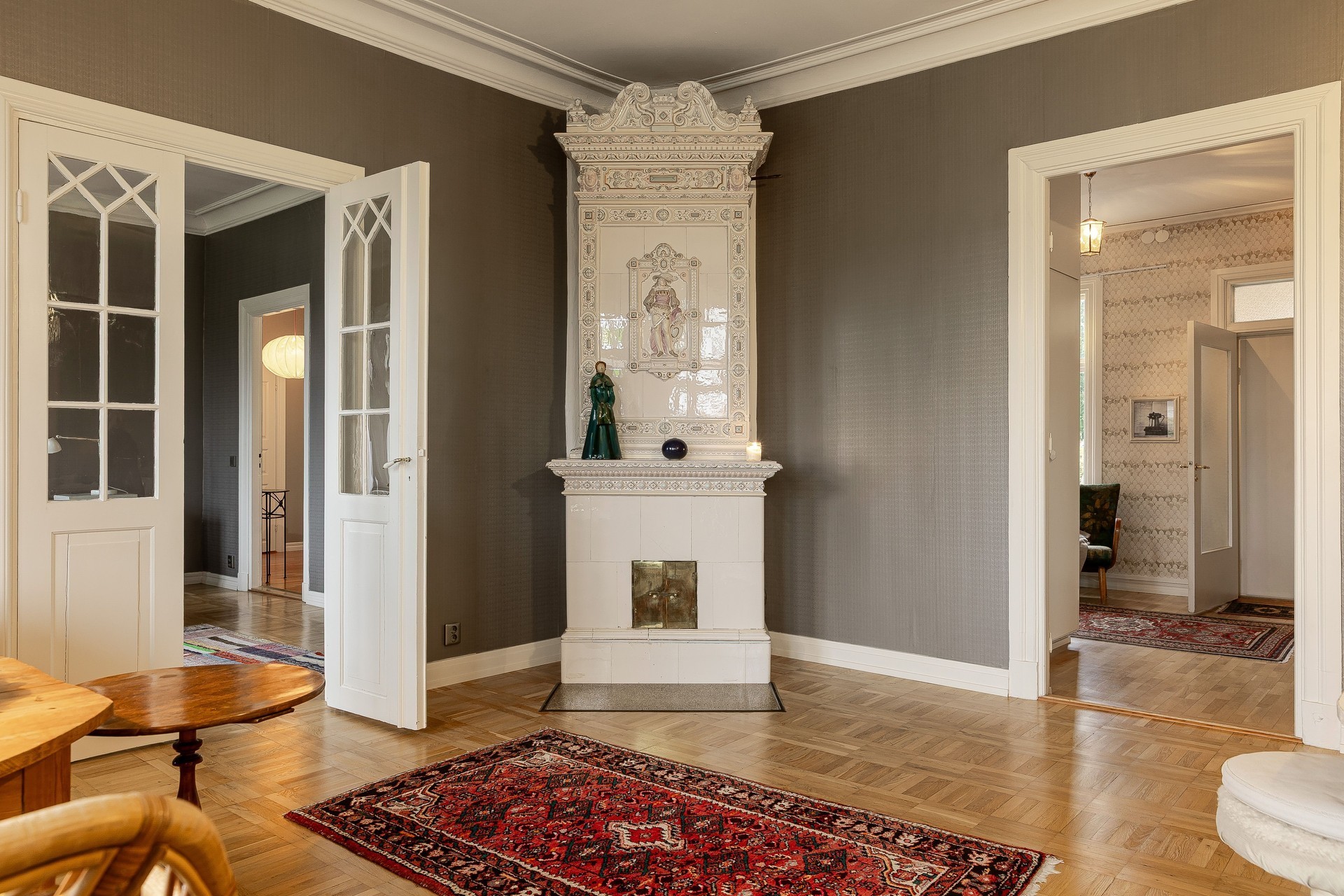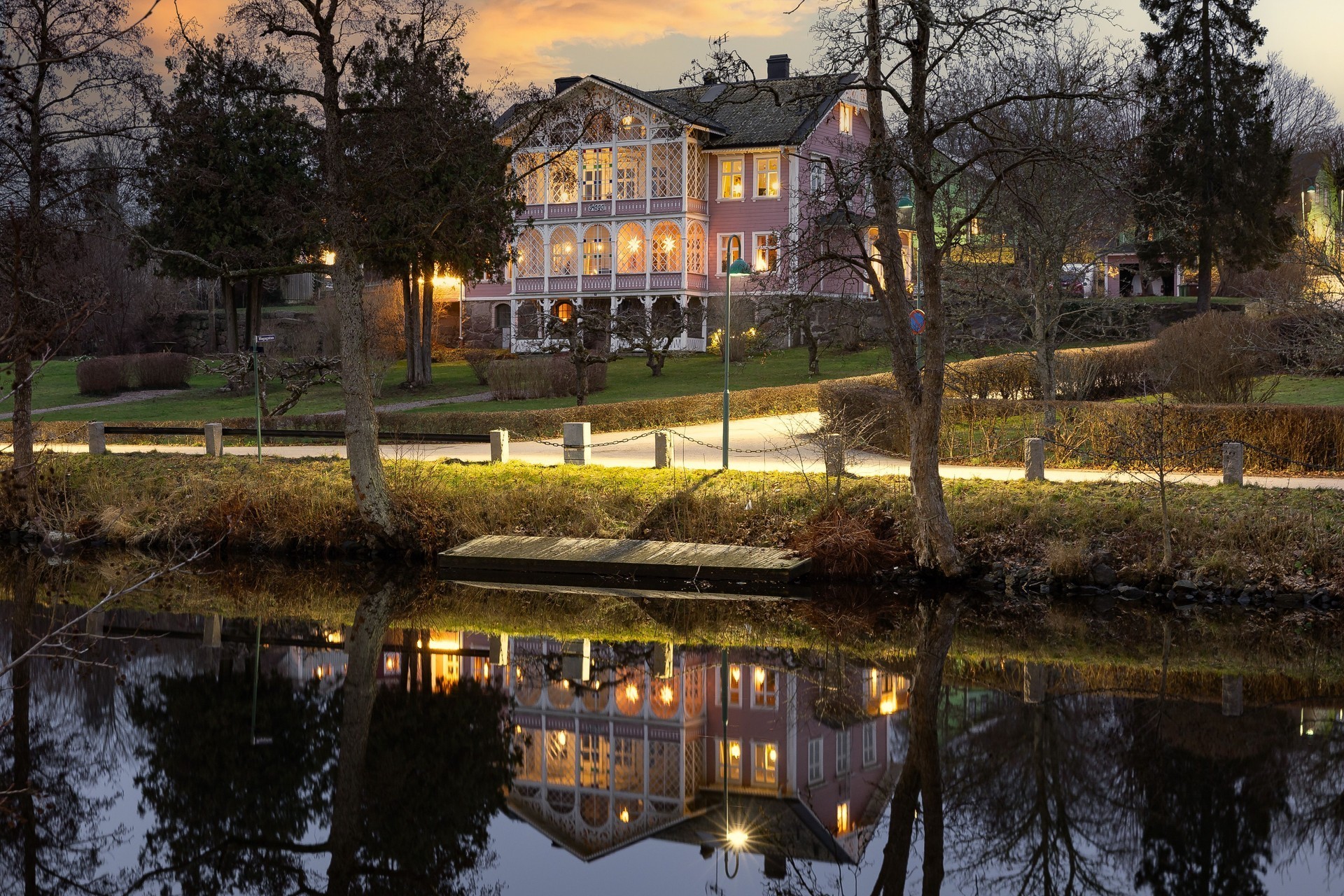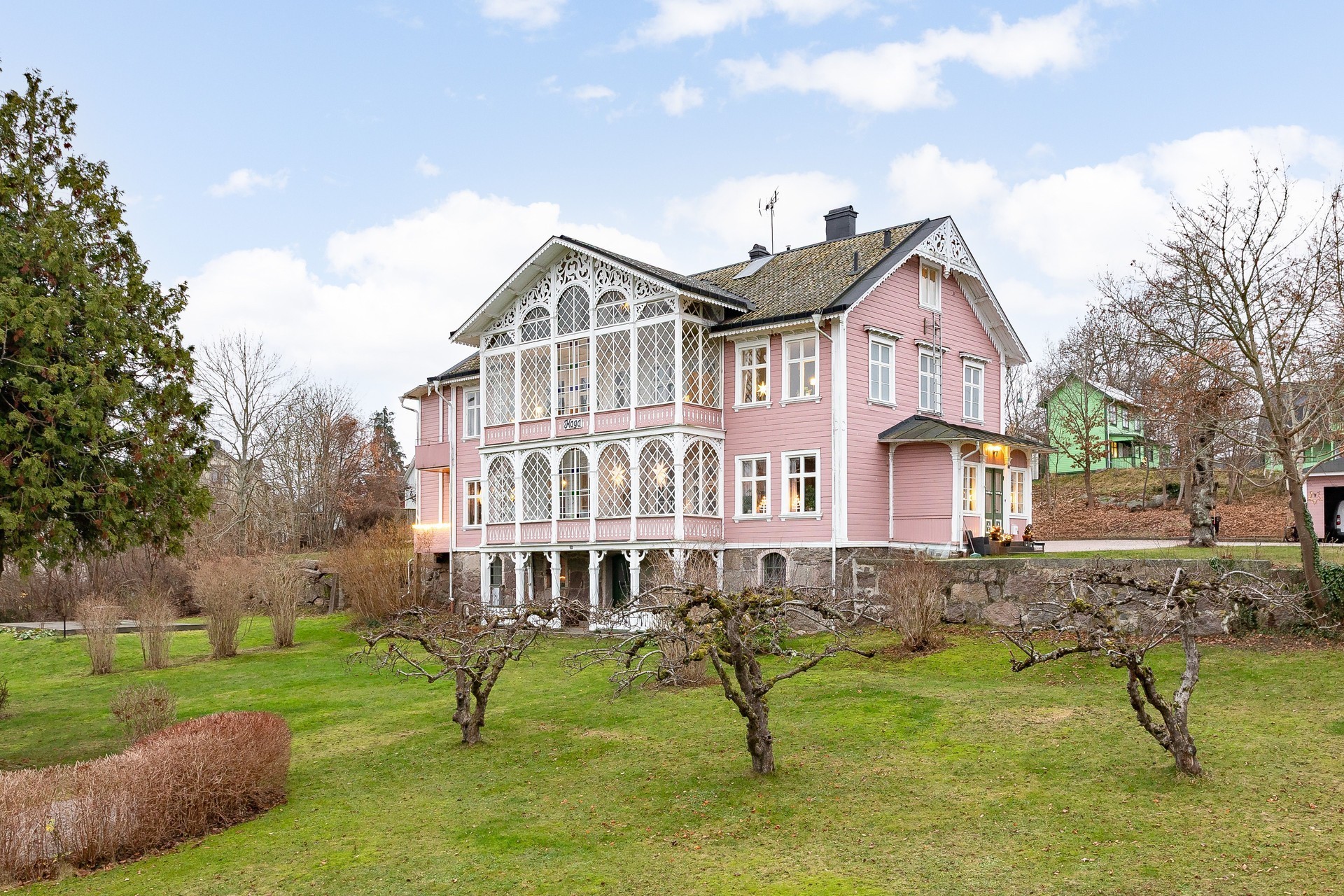 Villa Haga är en historisk och arkitektoniskt betydelsefull villa, känd för sin magnifika glasveranda, som ägdes av mejeristen Nils Ludvig Petersen och byggdes förra sekelskiftet. Attraktiv och sober ligger den idylliskt invid ån på en majestätisk parkliknande tomt, styvt 5000 kvm, med möjligheter. Byggnaden innehåller 5 st lgh mellan 62 - 134 kvm, inalles knappt 500 kvm, varav den största blir ledig för köparen. Bergvärme, kakelugn, fiber mm finns och är i mycket bra skick. Strategiskt läge med gångavstånd till stadskärnan, tågstation, golfbana och den eleganta brunnsparken. Hyresintäkter 425 kkr / år, driftkostnader 90 kkr. Säljes primärt i bolagsform men kan även friköpas. OBS! Bilder endast från den lediga lägenheten!!!