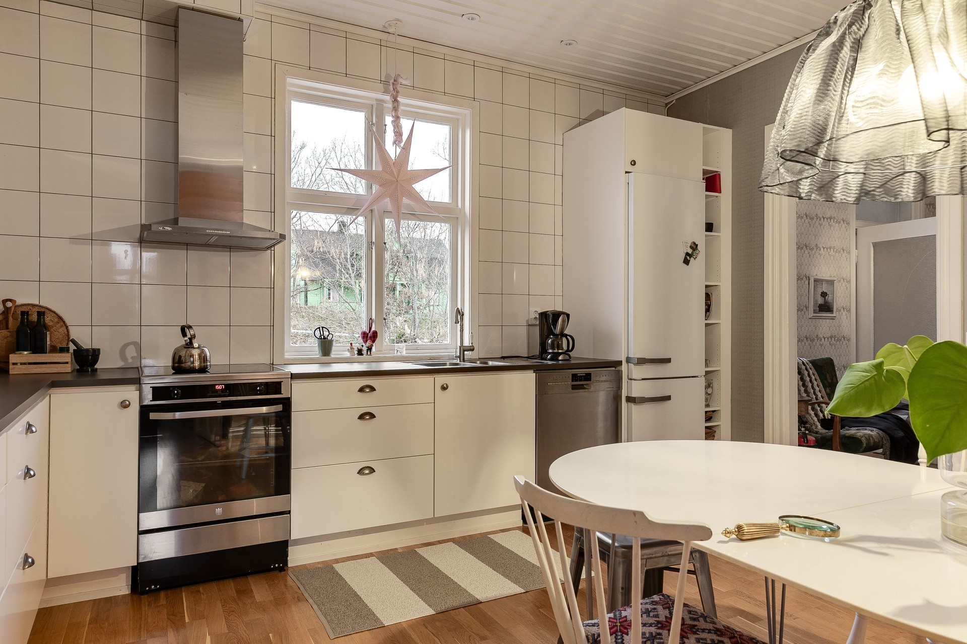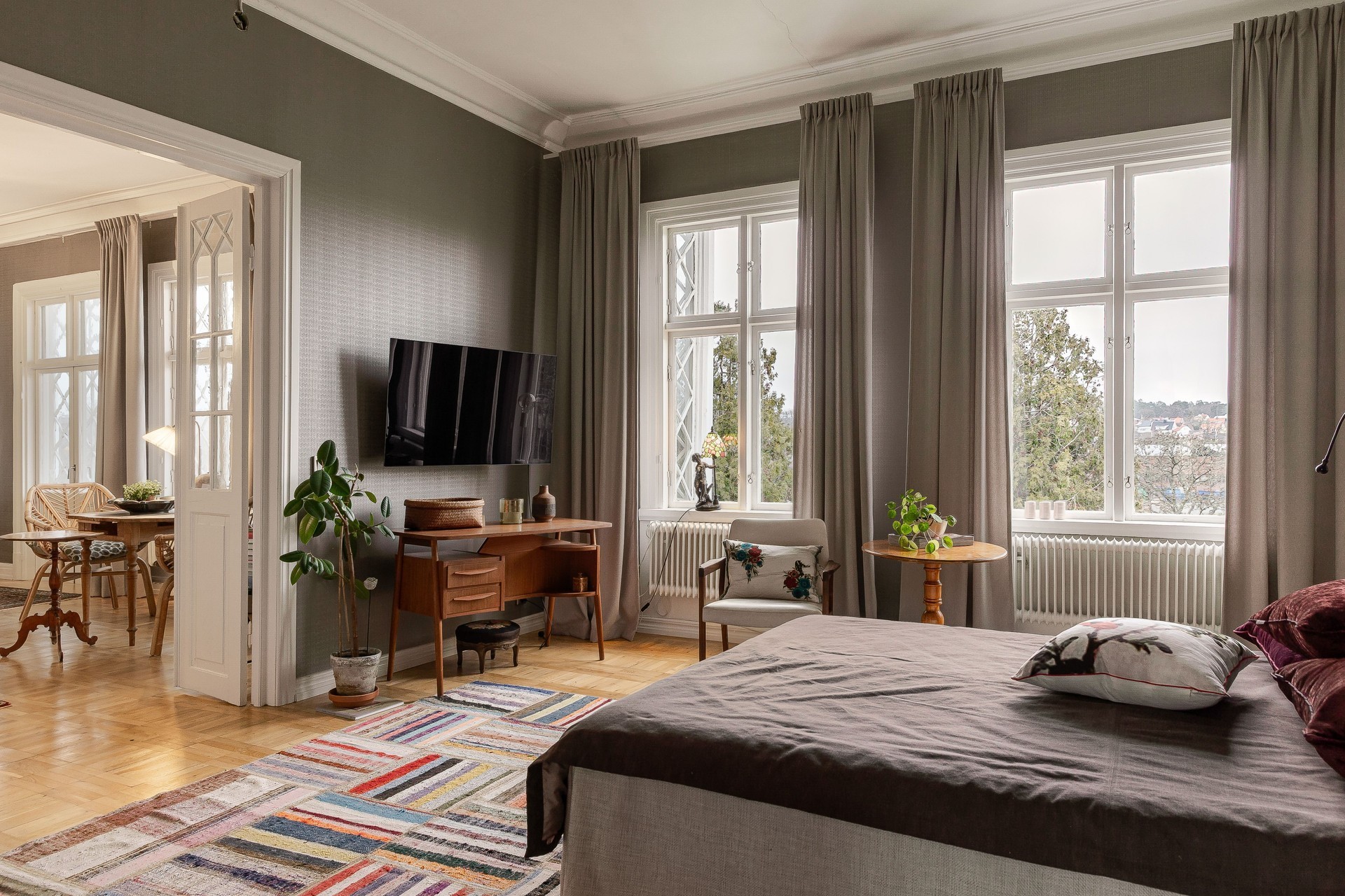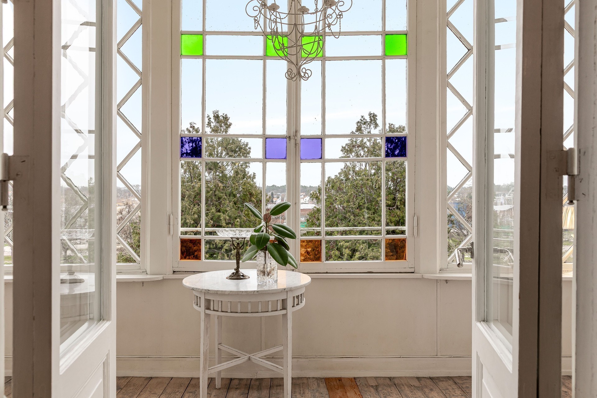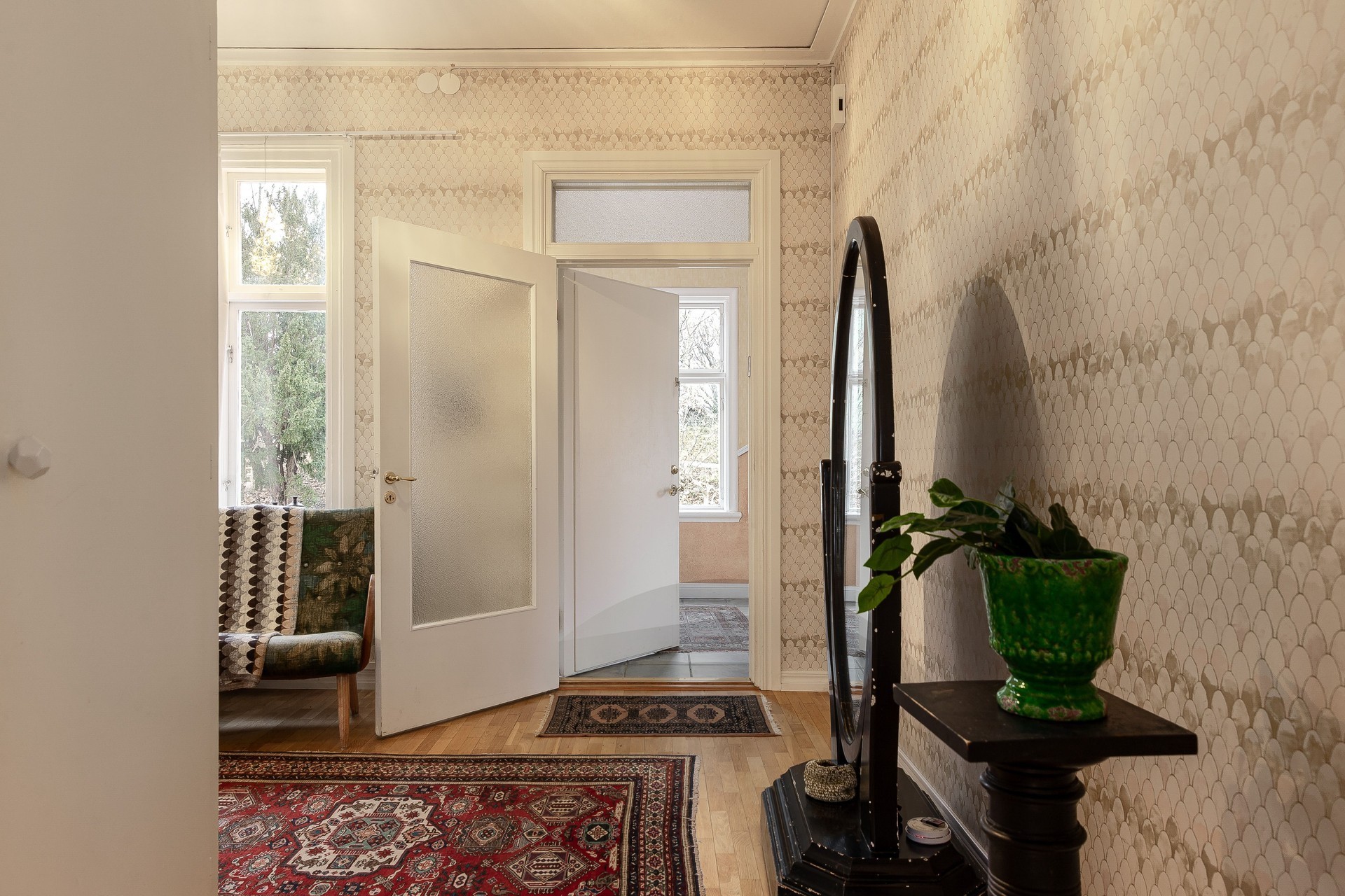 Villa Haga är en historisk och arkitektoniskt betydelsefull villa, känd för sin magnifika glasveranda, som ägdes av mejeristen Nils Ludvig Petersen och byggdes förra sekelskiftet. Attraktiv och sober ligger den idylliskt invid ån på en majestätisk parkliknande tomt, styvt 5000 kvm, med möjligheter. Byggnaden innehåller 5 st lgh mellan 62 - 134 kvm, inalles knappt 500 kvm, varav den största blir ledig för köparen. Bergvärme, kakelugn, fiber mm finns och är i mycket bra skick. Strategiskt läge med gångavstånd till stadskärnan, tågstation, golfbana och den eleganta brunnsparken. Hyresintäkter 425 kkr / år, driftkostnader 90 kkr. Säljes primärt i bolagsform men kan även friköpas. OBS! Bilder endast från den lediga lägenheten!!!