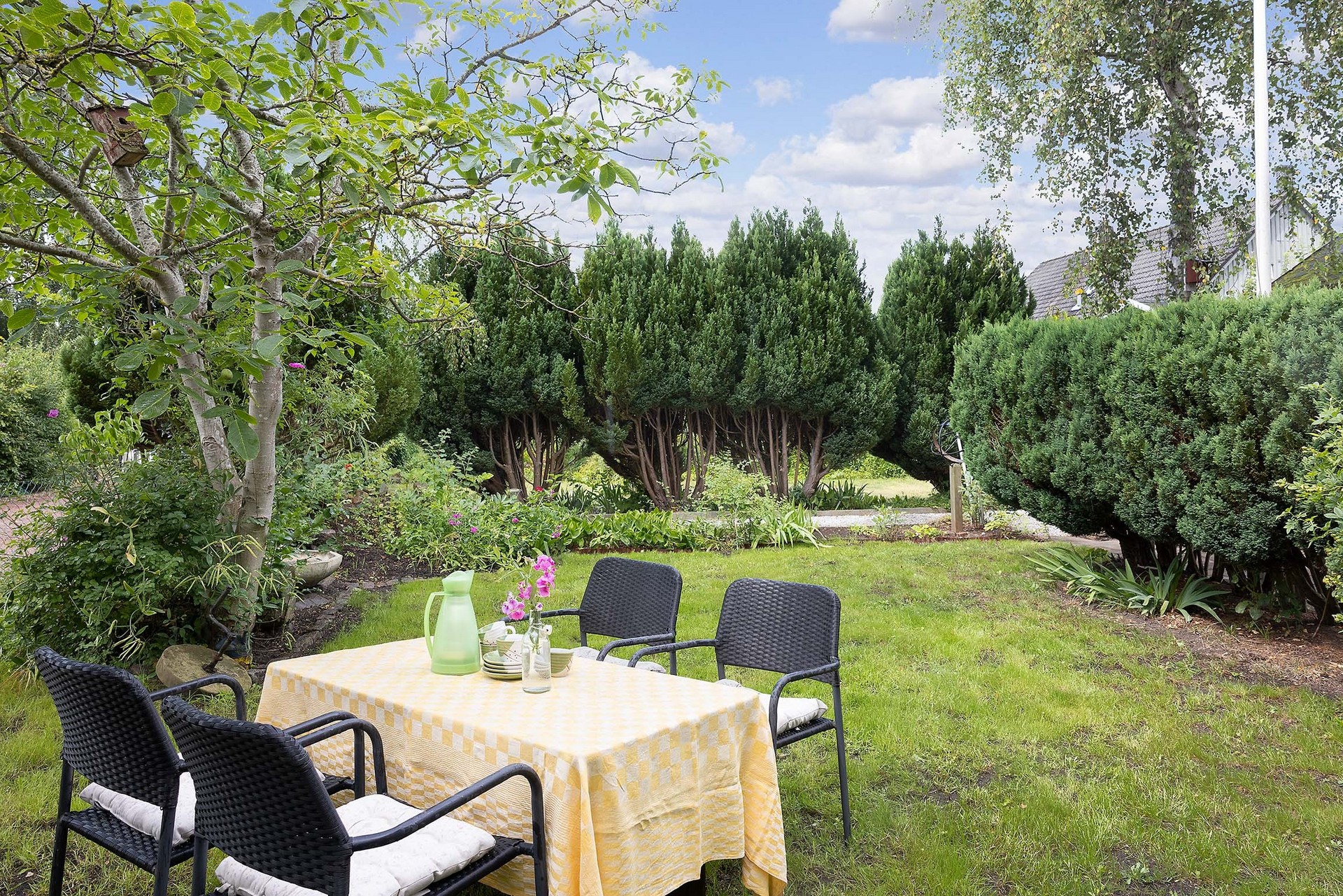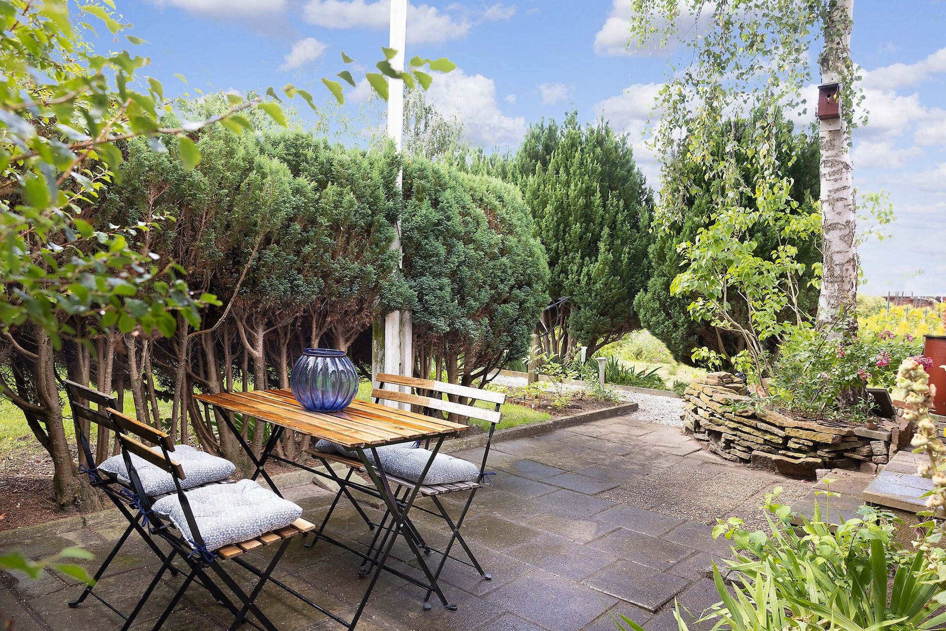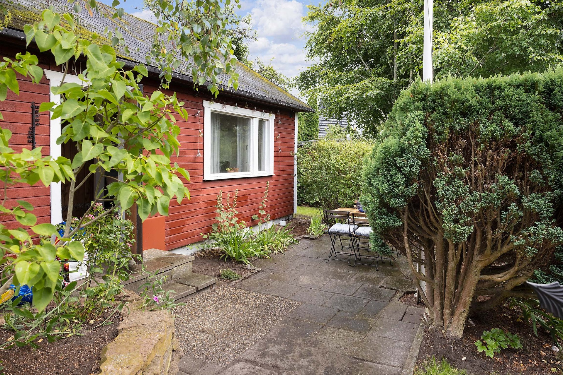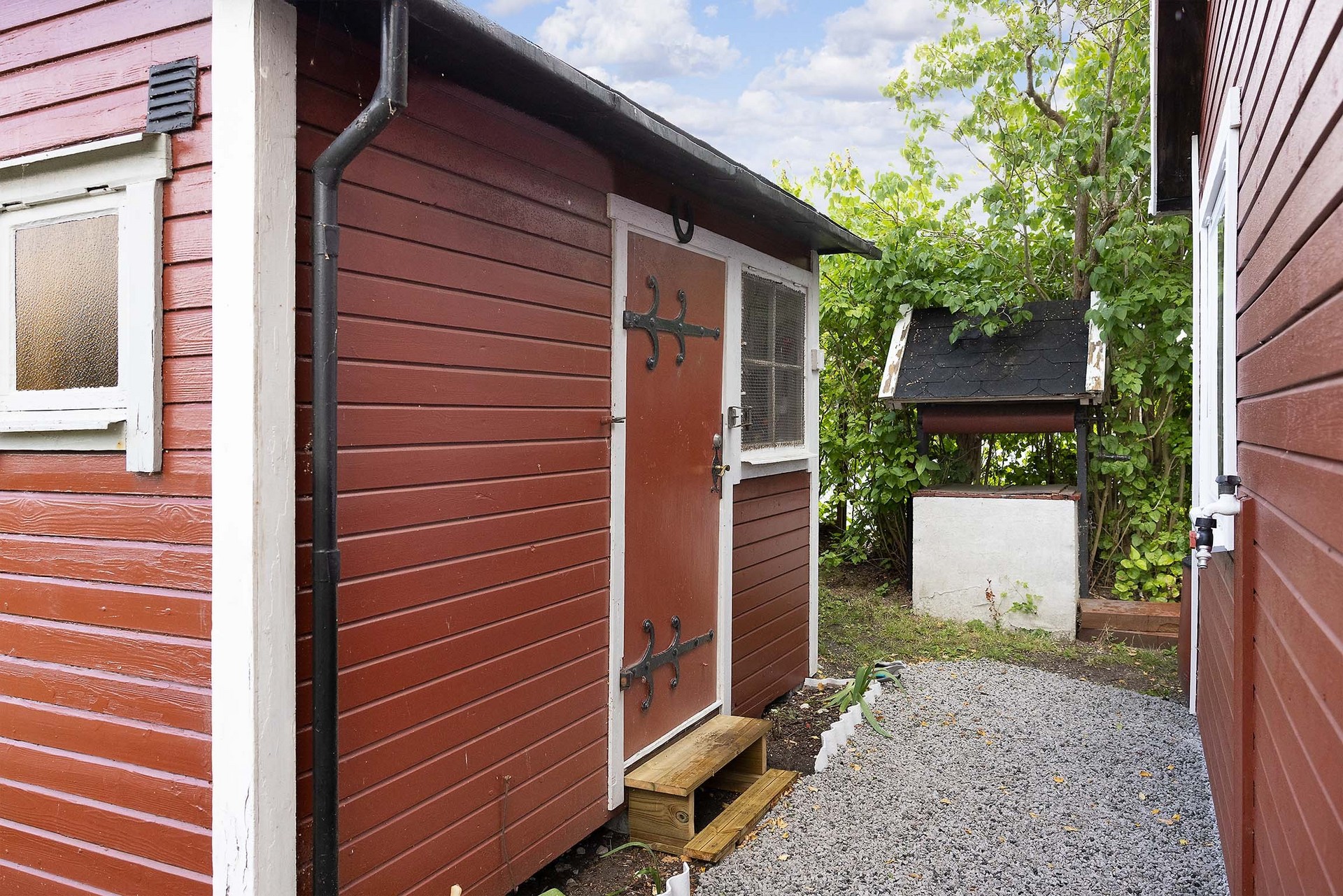 På tomten finns även ett fristående förråd om cirka 10 kvm med separat ingång. Utrymmet erbjuder generös förvaring för trädgårdsredskap, utemöbler och annat som hör sommarlivet till.