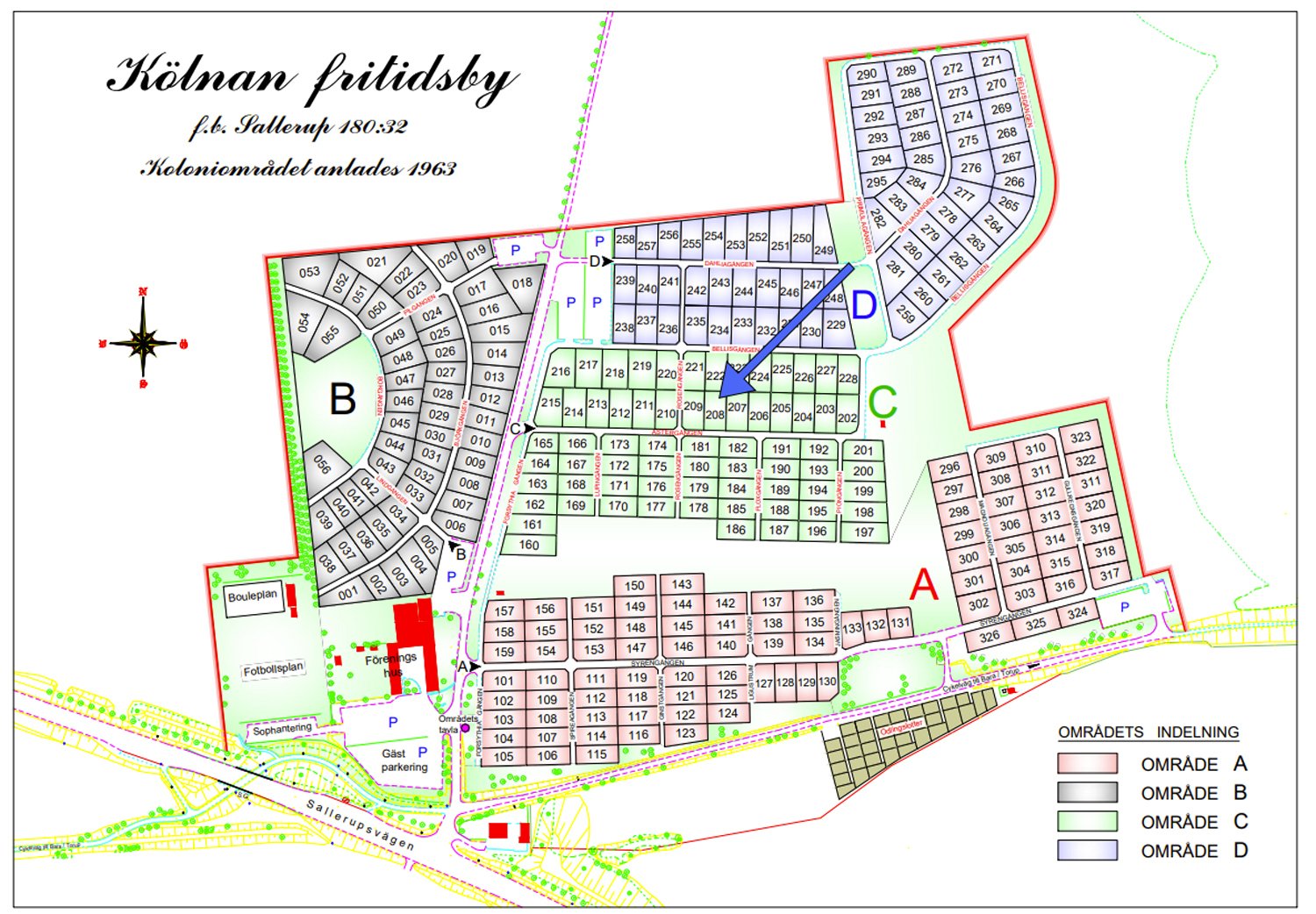 Fastighetsbeteckning: lott nr 208 inom del av fastigheten Malmö Sallerup 180:32 (Arrende)