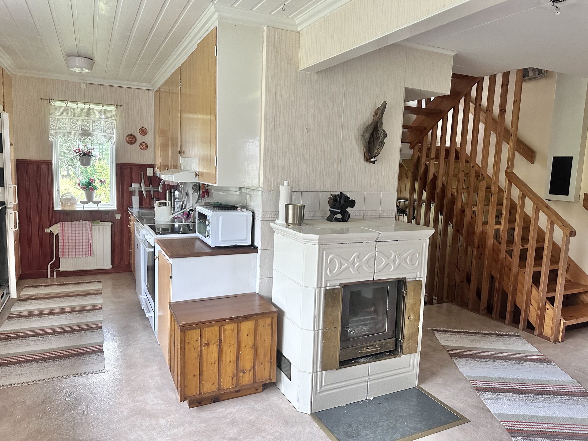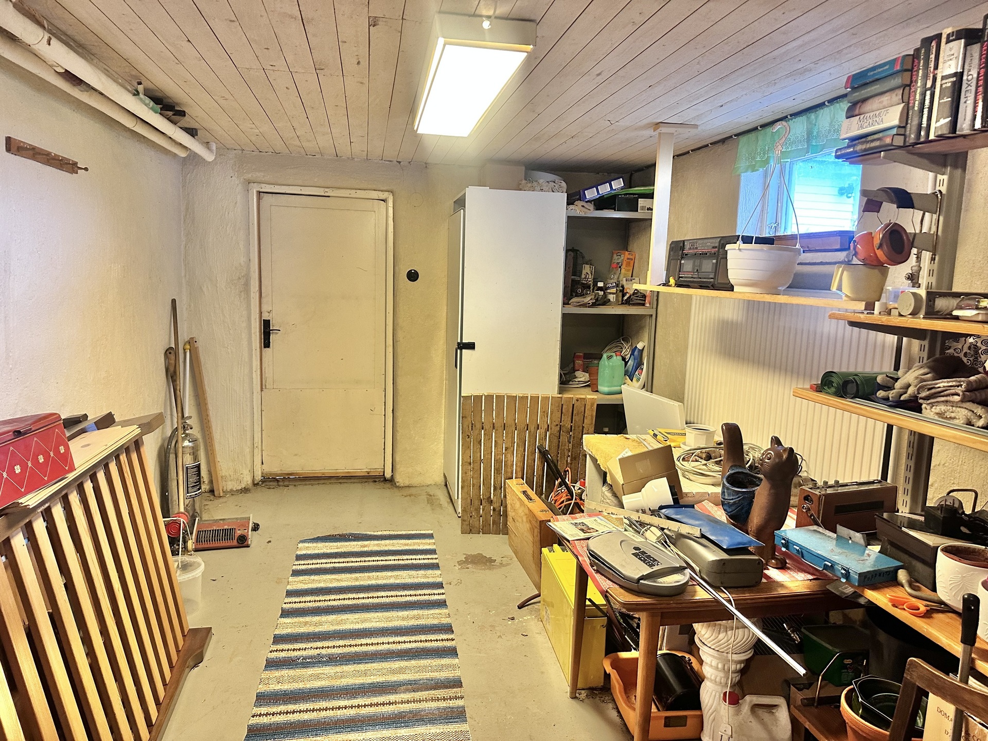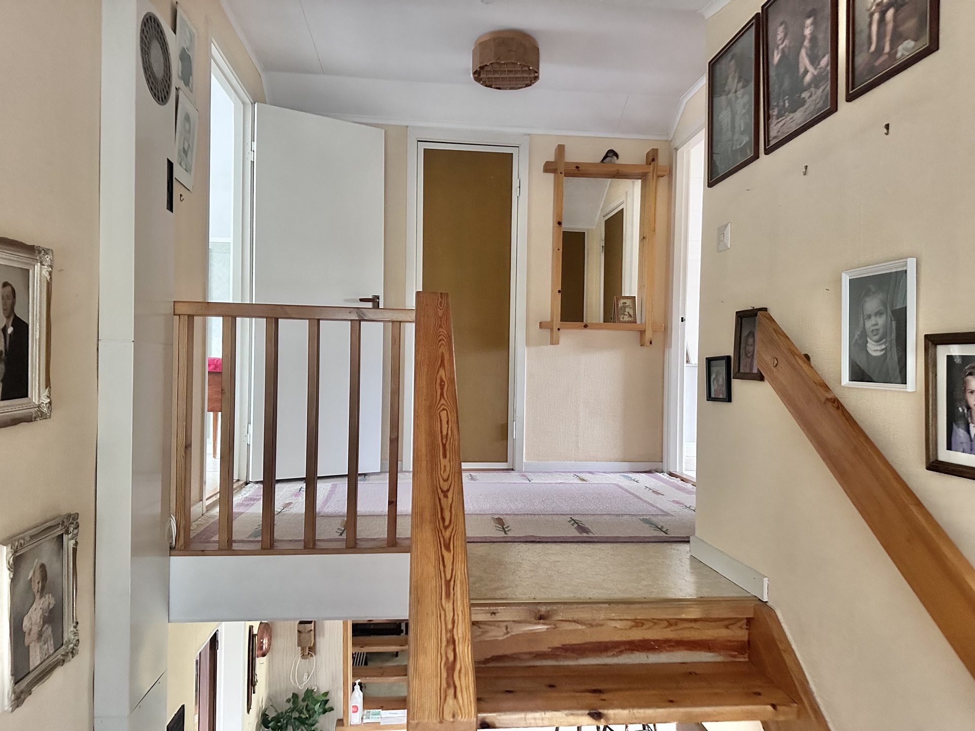 ENTRÉPLAN HALL Tapet vägg, plastmatta golv. Hylla plats för klädförvaring. KÖK /MATPLATS öppen planlösning Fönster, delvis träpanel, tapet vägg, plastmatta golv. Äldre köksluckor, kyl, frys, diskmaskin, spis med häll och fläkt. Utgång till altan. Inkaklad braskamin. Ftx/luft/luft/ventilation. ALLRUM Tre fönster, tapet vägg, parkett golv. WC Fönster, våtrumstapet, våtrumsmatta. Handfat, bidé och Wc. ÖVRE PLAN HALL Tapet vägg, plastmatta golv. Utgång till balkong. SOVRUM 1 Fönster, tapet vägg, plastmatta golv. Två kattvindar. SOVRUM 2 Fönster, tapet vägg, plastmatta golv. En kattvind. FÖRRÅDSRUM/GARDEROB Plats för klädförvaring. TVÄTTRUM Våtrumsmatta, våtrumstapet och handfat med överskåp. KÄLLARPLAN HALL Tapet vägg, plastmatta golv. Förrådsrum under trapp, tre garderober. GILLESTUGA Träpanel, tapet vägg, trägolv. PANNRUM Betong golv, betongvägg. Jordvärmepump insatt 2023, garanti och vedpanna. BADRUM/TVÄTTSTUGA Våtrumstapet, våtrumsmatta. Tvättmaskin och tvättho. Dusch, badkar och Wc. FD.GARAGE/FÖRRÅDSRUM Betong vägg, golv. Hyllor och bra förrådsutrymme med matkällare.