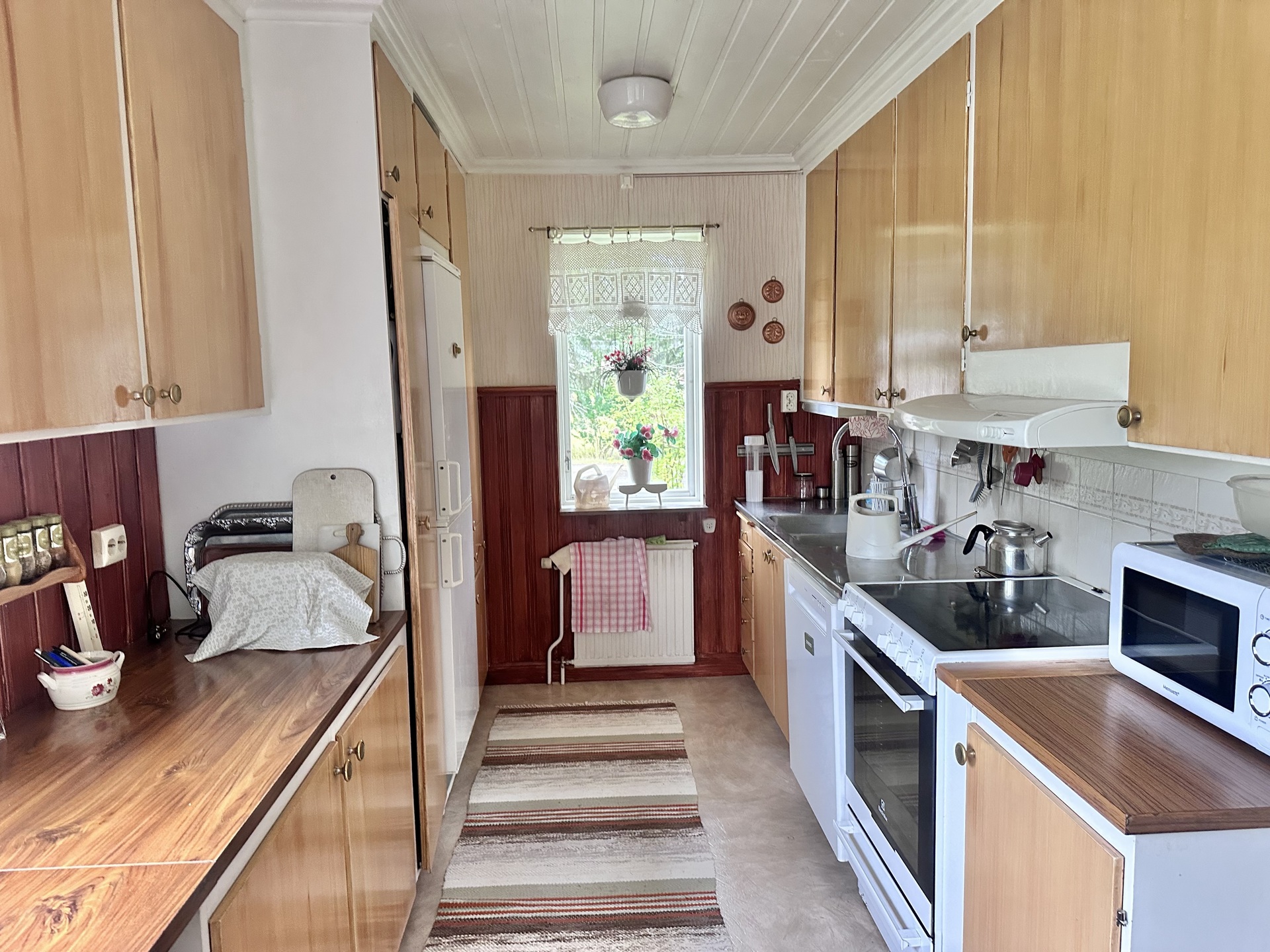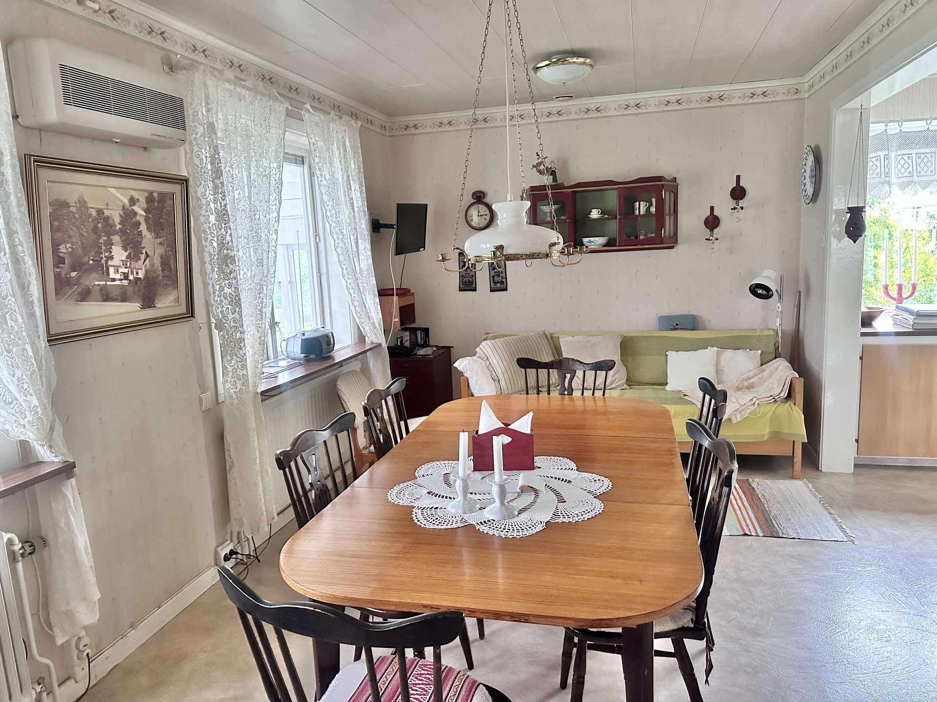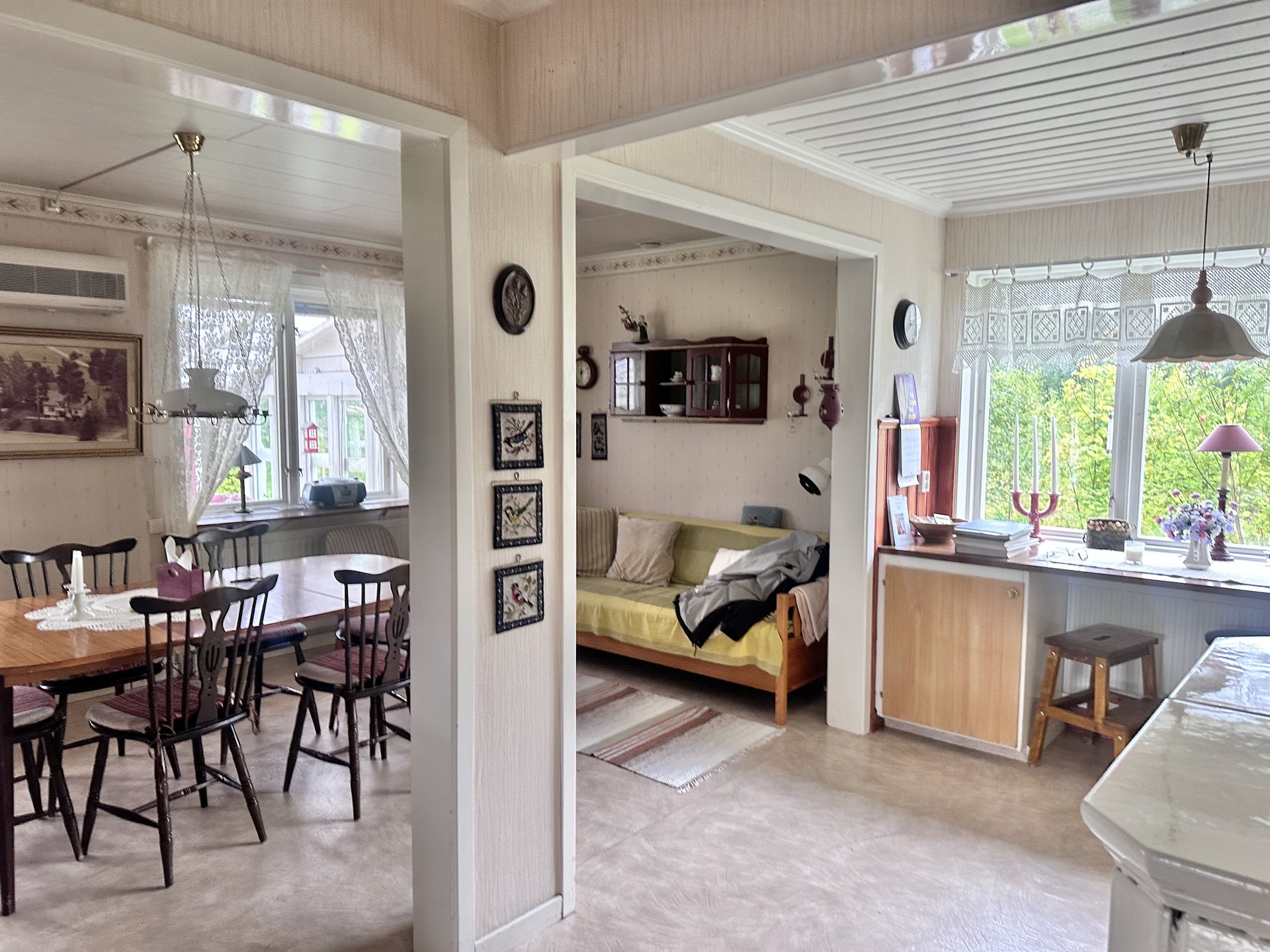 ENTRÉPLAN HALL Tapet vägg, plastmatta golv. Hylla plats för klädförvaring. KÖK /MATPLATS öppen planlösning Fönster, delvis träpanel, tapet vägg, plastmatta golv. Äldre köksluckor, kyl, frys, diskmaskin, spis med häll och fläkt. Utgång till altan. Inkaklad braskamin. Ftx/luft/luft/ventilation. ALLRUM Tre fönster, tapet vägg, parkett golv. WC Fönster, våtrumstapet, våtrumsmatta. Handfat, bidé och Wc. ÖVRE PLAN HALL Tapet vägg, plastmatta golv. Utgång till balkong. SOVRUM 1 Fönster, tapet vägg, plastmatta golv. Två kattvindar. SOVRUM 2 Fönster, tapet vägg, plastmatta golv. En kattvind. FÖRRÅDSRUM/GARDEROB Plats för klädförvaring. TVÄTTRUM Våtrumsmatta, våtrumstapet och handfat med överskåp. KÄLLARPLAN HALL Tapet vägg, plastmatta golv. Förrådsrum under trapp, tre garderober. GILLESTUGA Träpanel, tapet vägg, trägolv. PANNRUM Betong golv, betongvägg. Jordvärmepump insatt 2023, garanti och vedpanna. BADRUM/TVÄTTSTUGA Våtrumstapet, våtrumsmatta. Tvättmaskin och tvättho. Dusch, badkar och Wc. FD.GARAGE/FÖRRÅDSRUM Betong vägg, golv. Hyllor och bra förrådsutrymme med matkällare.