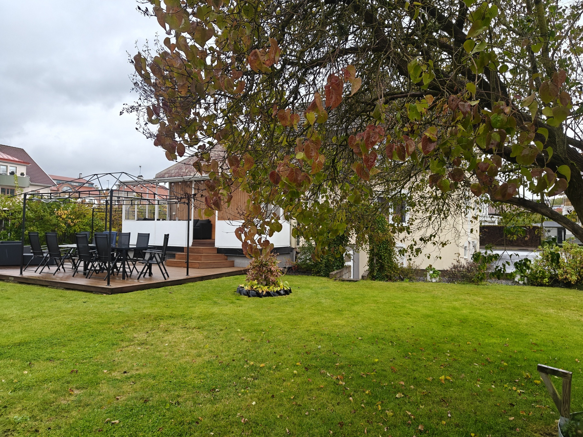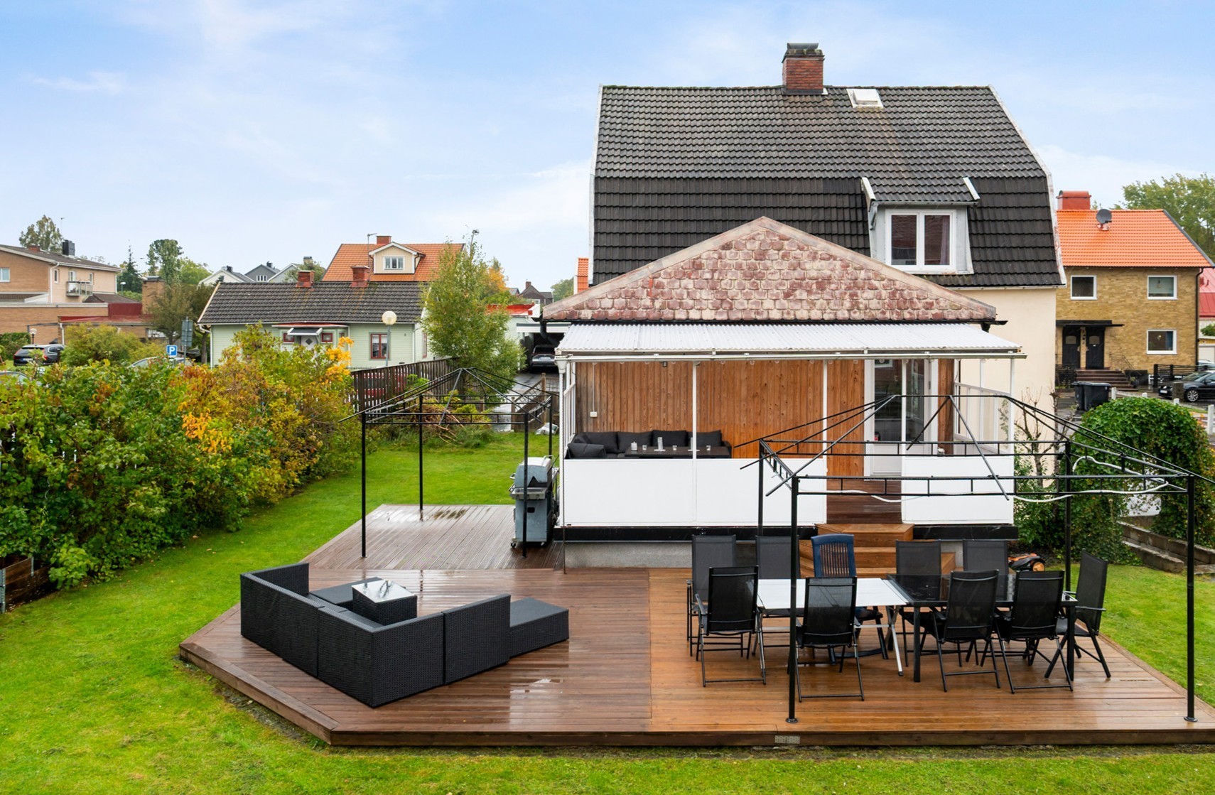 Tvåfamiljsvilla med uthyrningsdel, relaxavdelning, garage och trädgårdsoas i centrala Värnamo!