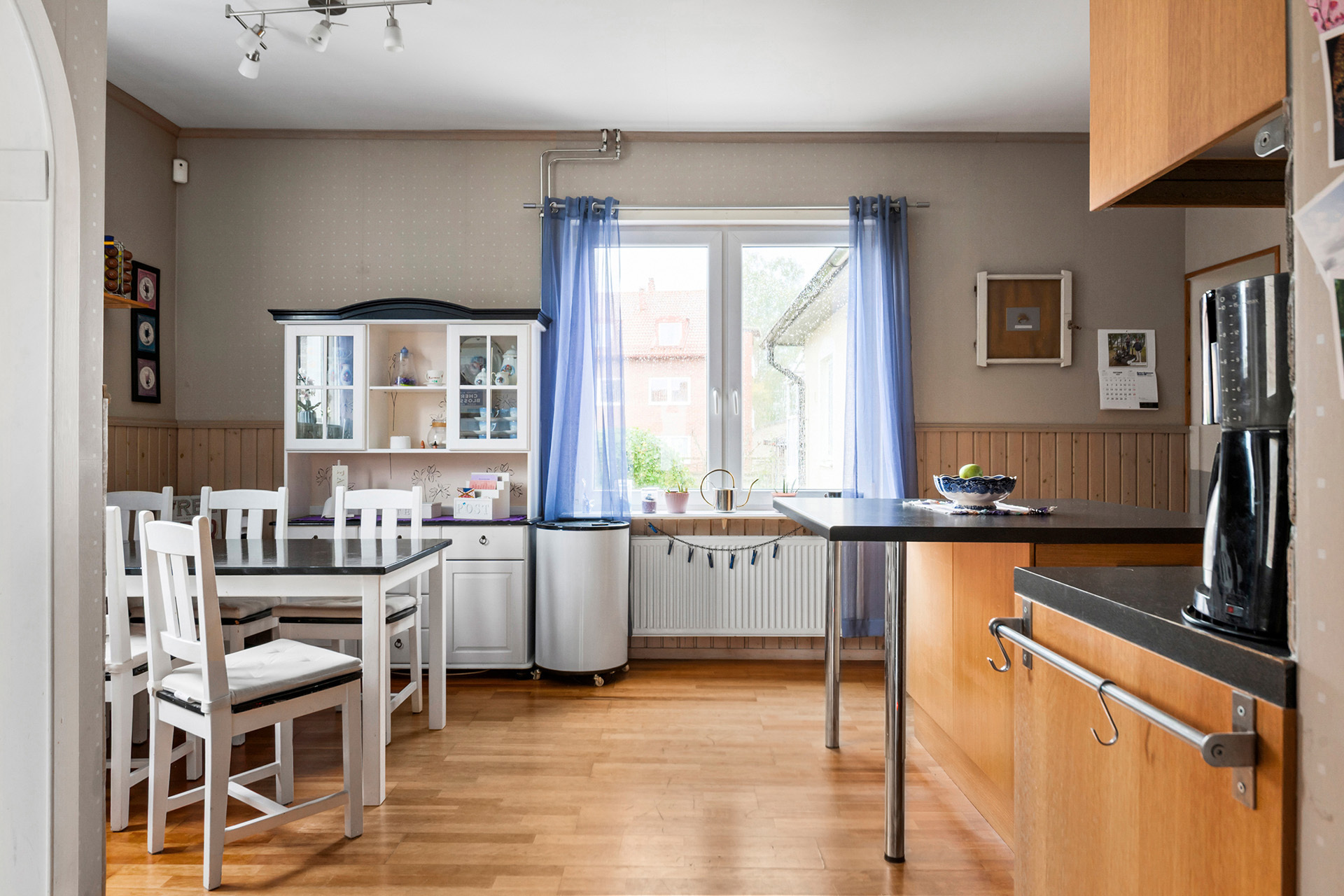 Välkommen till Finngatan 4, Värnamo Trevlig tvåfamiljsvilla med uthyrningsdel och centralt läge i Värnamo. Två separata lägenheter med egna entréer. Källarplan med tvättstuga och relaxavdelning. Trädgård med gräsyta och trädäck. Fjärrvärme, fiber och garage med dubbla portar.